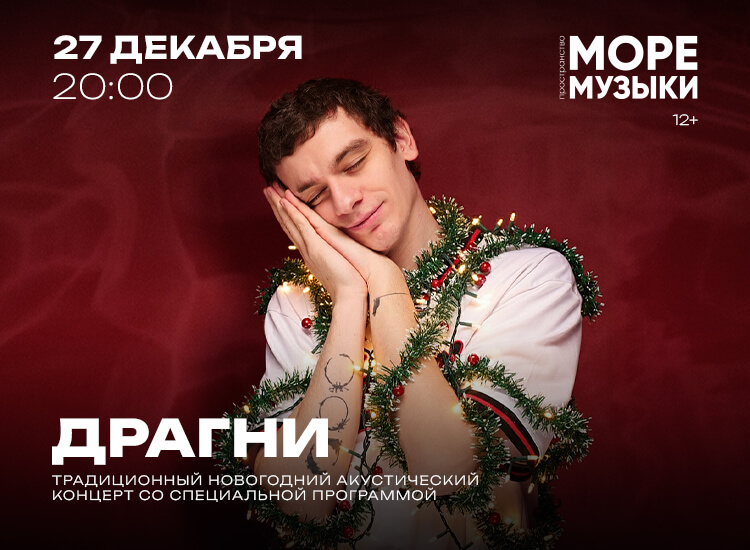 Традиционный новогодний концерт группы пройдет в «Море Музыки». Проведем его в компании ребят, предвкушая приближение главной ночи этого года, а море пронзительного голоса и музыки Сережи Драгни — станет запоминающимся подарком себе и любимым.